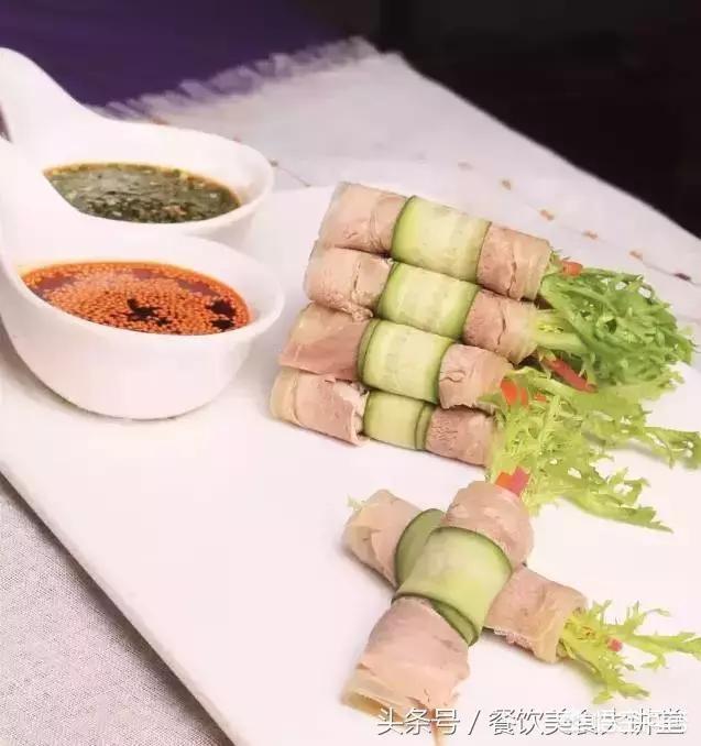 这道菜最大亮点在于自制的当归泡菜,将其切丝裹入牛肉卷,外嫩里脆、颜色靓丽,是道绝佳的佐酒凉菜。