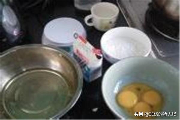 1.准备材料。面粉过筛好,鸡蛋分开蛋白和蛋黄装进干净无水无油的容器内