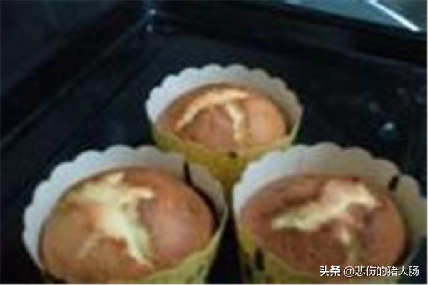 6将蛋白霜分三次加入蛋黄糊7搅拌均匀8倒入纸杯,进烤箱15分钟(我的烤箱不恒温)完成
