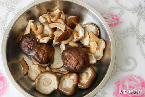 2、烧开水,把处理好的香菇焯烫一下:水开放入香菇,再煮2分钟,取出过凉。