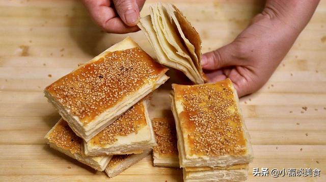 3油酥要给足,油酥给足才能形成层次分明,最后的面要用压不能擀,如果用擀面杖来擀,这样能让面与面之间结合的更紧,油酥无法起到作用,并且口感会降低