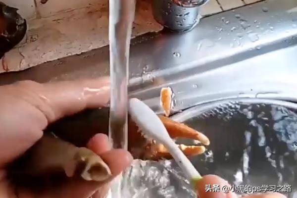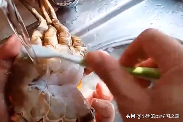 4.用牙刷清洗腹部,注意保留蟹黄。