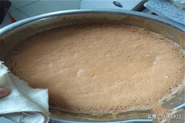 直接用电饭煲做就好,准备好材料:面粉,鸡蛋,牛奶,盐,糖,油 注意:这个过程不能沾一滴水,器皿都擦干再用哦。按量打蛋,在这里我用了4个,蛋清分离,三根筷子准备打蛋清,为了突出甜,放一点点盐,继续打继续打继续打 有点稠时再放一勺糖,继续打,大约15分钟后,就会变成奶油状,而且筷子上的不会掉下来 这个过程比较关键,15分钟连续打,不是闹着玩的,很痛苦滴, 蛋黄里放两勺糖3勺冒尖的面粉6勺牛奶搅拌好倒入一半奶油状的蛋清 注意:上下搅拌而不是打圈搅拌均匀后再倒入另一半奶油状蛋清,上下搅拌好 电饭煲按下煮饭健预热1分钟后拿出,锅有点热就可以 倒入少许油,均匀涂在锅内,以防粘锅 倒入搅拌好的东西,然后蹲几下锅,把气泡震出来 按下煮饭键,2分钟左右会自动跳到保温档,这时用毛巾捂住通风口,闷20分钟 然后再按下煮饭键,20分钟后就OK啦