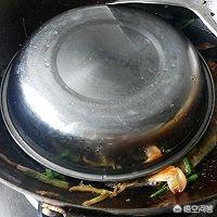 加入葱,绿色的那一节,之后加入半碗水大火焖步骤8