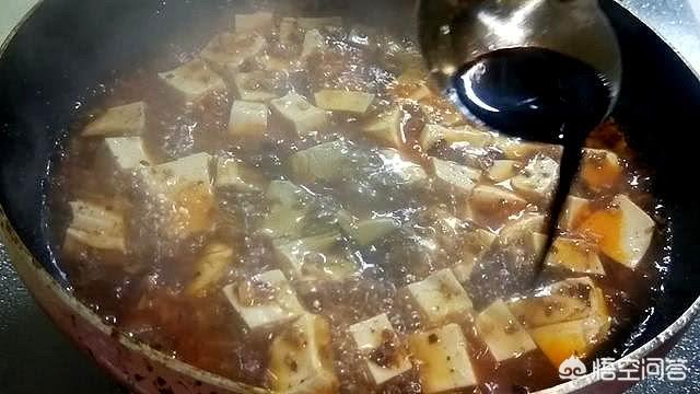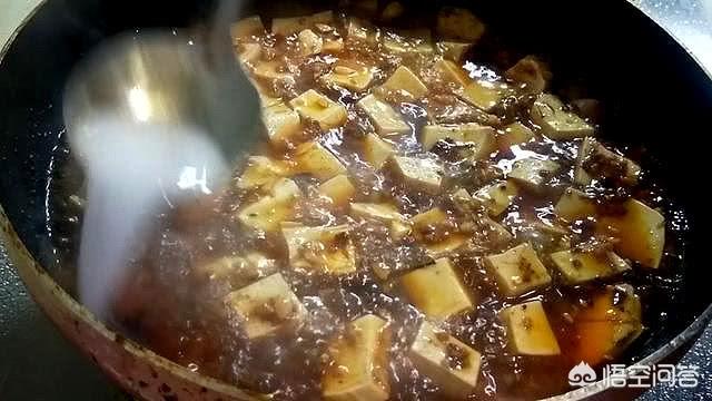 3、煮制过程中,一定要分三次加入淀粉水收汁,这样做出来的麻婆豆腐入色入味