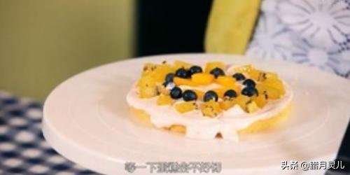 12、蛋糕抹面,铺水果,抹面时间不要太久,因为在抹面的过程中,淡奶油在摸到来回抹动的过程中还是一个打发的过程蛋糕裱花以及表面装饰。