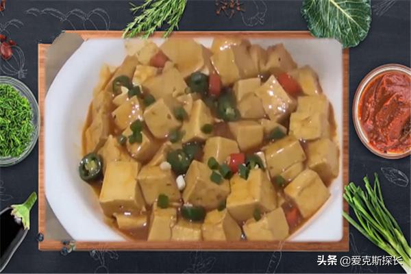 食材:豆腐一块,自制豆瓣辣椒一勺,郫县豆瓣酱一勺,老抽半勺,水淀粉少许,新鲜麻椒少许