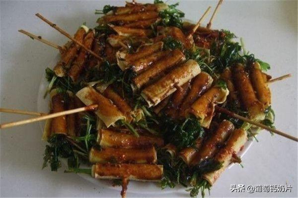 我们要把菜串提前串好,待油锅热了之后把菜串挨个炸好,炸熟之后控油捞出,刷上我们之前做的蘸料,最好再加一些孜然粉,味道会很浓郁。