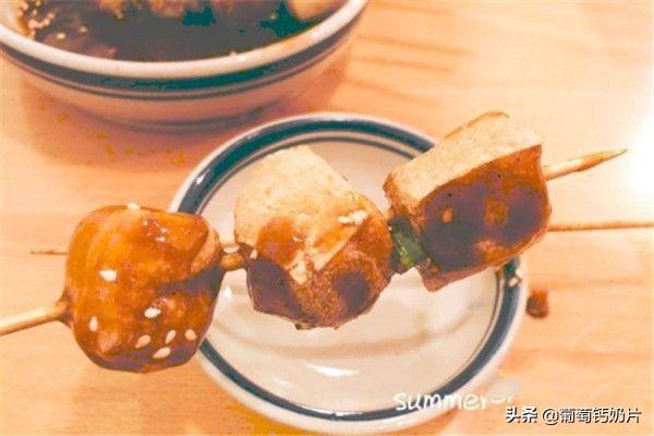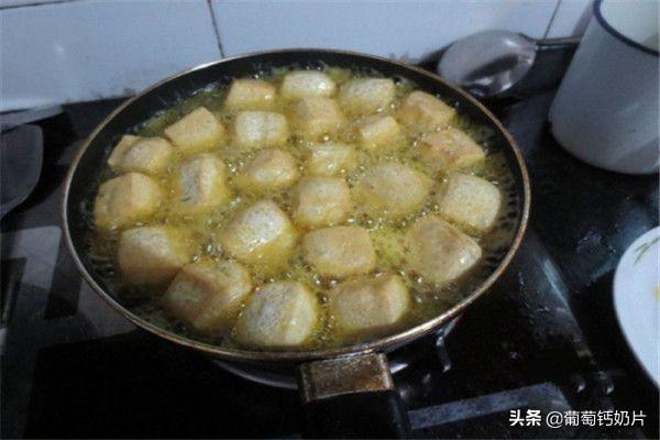接下来我们做小吃,起锅烧油,油七分热热以后把豆腐泡放进油锅中炸,炸到豆腐泡表皮有些硬就可以出锅了,我们把之前做好的蘸料用刷子均匀的刷到豆腐泡上,就做出美味的炸豆腐泡啦。