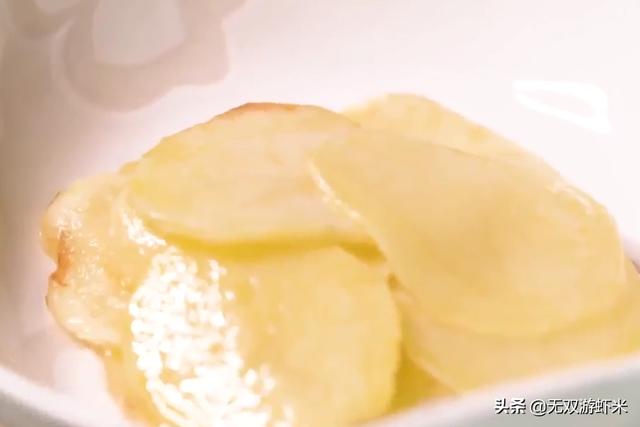 1.土豆去皮洗净,切成薄片,放入冷水中浸泡,去除淀粉后控水备用。