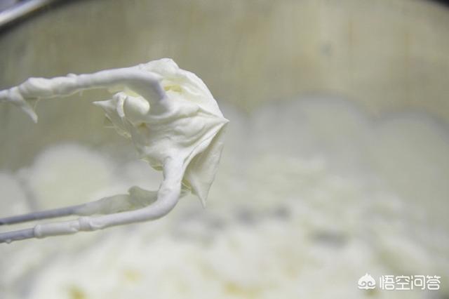 把冷藏好的淡奶油加入糖分用电动打蛋器打发至干性发泡。