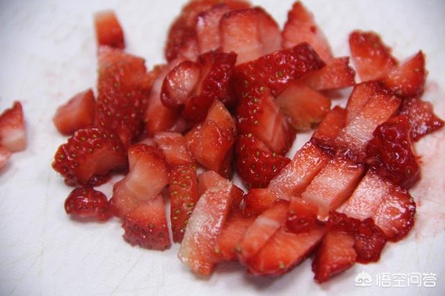 1.草莓洗净去蒂,用纸巾吸干水分、切半。