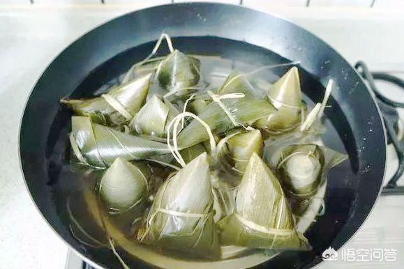 五、最后将包好的粽子放入锅中,加冷水没过粽子,大火滚煮2小时,小火焖煮2小时,出锅。