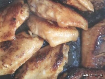 6、把鸡翅放入锅中,微微煎炸,煎至出颜色。