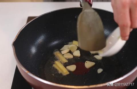 4、锅中留出少许油下葱姜蒜炒香,随后下入番茄酱炒出红油