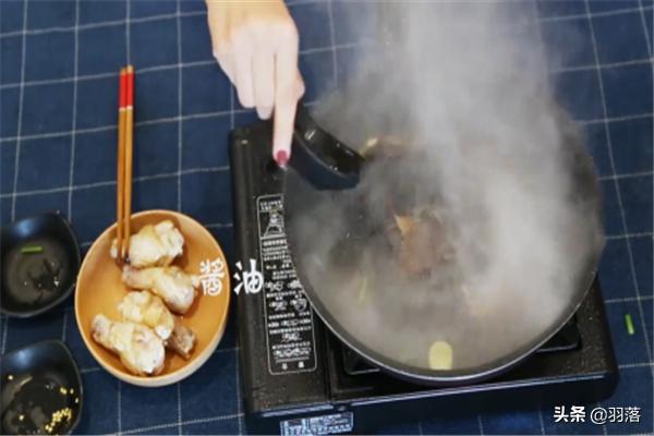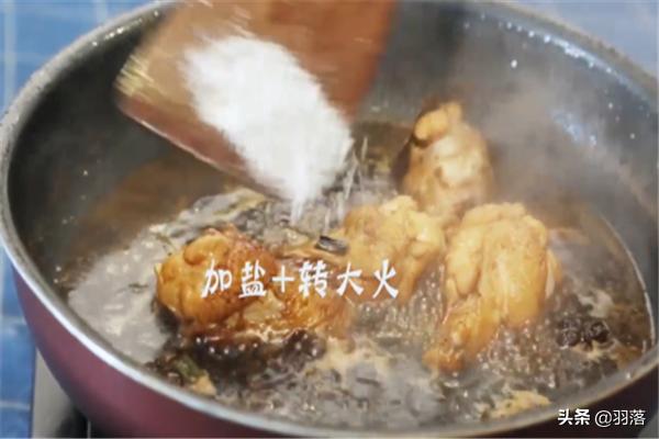 加水,大火烧开下鸡腿,大火烧开转中火,焖制30分钟加盐转大火,最后装盘即可。