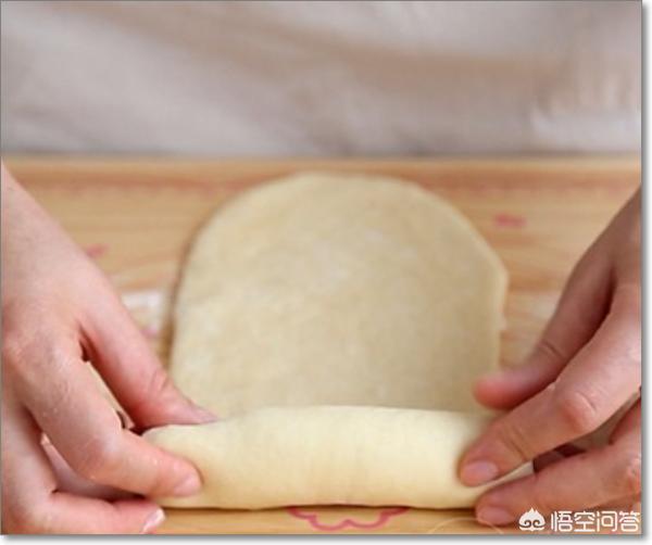 8、轻轻卷起来,全部做好后收口朝下盖上保鲜膜松弛10分钟。