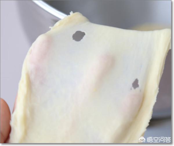 2、把揉面桶放到厨师机上,旋紧,启动2档揉5分钟,转3档揉3分钟,取出来检查状态,揉出粗膜的状态即可进行下一步。