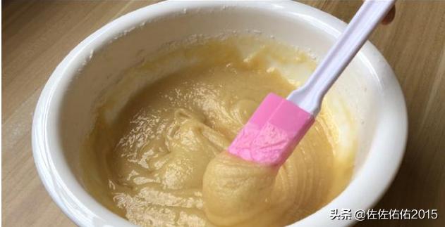 1、把上述所有食材,除面粉,混合均匀,用力搅拌,成这种流动状态就可以了。有人说,没有花生油,可以用猪油不,也可以,只不过,花生油更香,猪油更酥。然后蜂蜜有就加,口感会更好哦!