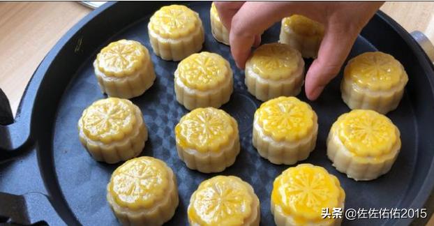 把月饼放在烤盘中刷一层蛋黄酱,烤20分钟190度。