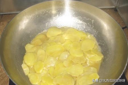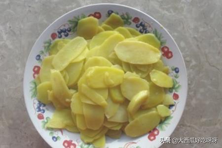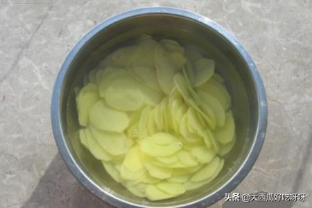 土豆切片泡水,可以去除土豆中的淀粉,炒的时候不容易粘锅。