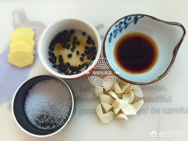 【辅料】姜1块,蒜3瓣,白砂糖8克,豆豉1汤匙,生粉8克