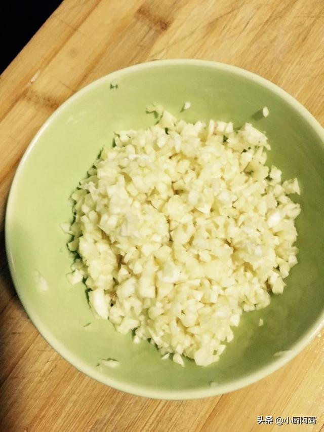 3、蒜、姜、葱切碎。