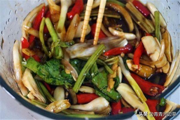 3.从冷水里捞出控干,放2勺生抽、1勺蚝油、半勺老抽、一点醋,可以再撒1勺盐和糖,搅拌均匀,保鲜膜盖上放冰箱里冷藏1小时