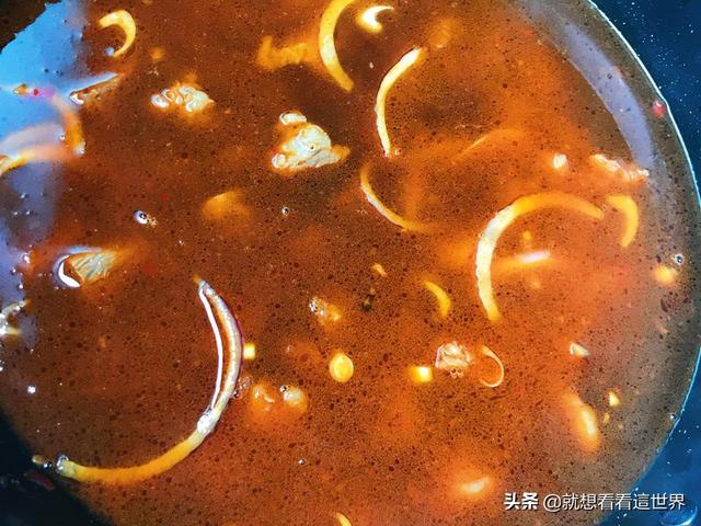 4.加水没过牛肉,放入洋葱丝,大火烧开转小火慢炖。