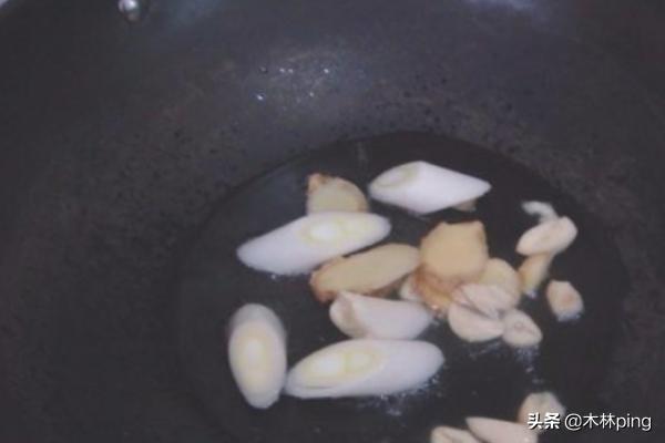 2、炒锅烧热,锅中放入油,油热后放入葱姜蒜爆香。放入牛肉翻炒均匀。