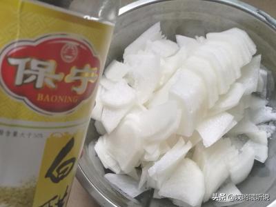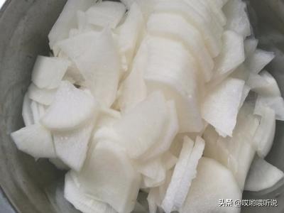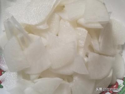 1、先白萝卜洗净去皮,再将白萝卜切成小片,