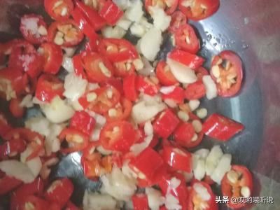 2、再将小米椒、蒜切碎,加上少许盐腌制一下,