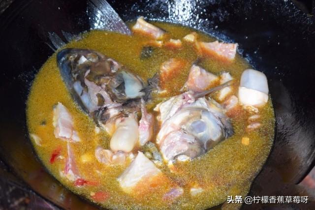 3、往锅里加水,没过鱼头高度,盖上锅盖开始炖煮。炖煮一段时间后加入一些糖,搅拌均匀,转小火炖一会。咸淡都没问题后就可以起锅了,这道鱼杂做法简单,口感却非常棒。