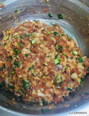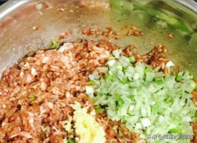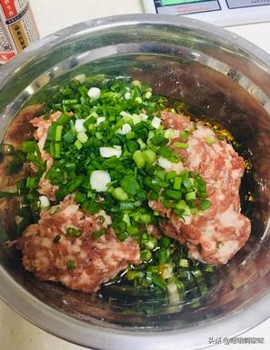 第三步放入葱姜末继续搅拌均匀腌制入味儿。取适量的粉条放入容器中用水浸泡至变软后切成小段。过凉后的小白菜挤干水分剁碎。把切好的粉段、剁碎的小白菜根据肉馅的粘稠程度再挤一下水分放入腌制肉馅的容器中搅拌均匀即可。