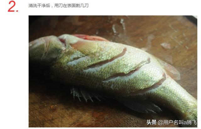 1.鲈鱼洗净,用调味料A腌半小时。