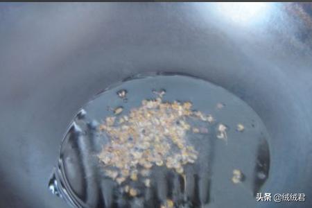 4、锅内放少许油,放入花椒小火慢慢翻炒,花椒变色后,捞出不要;