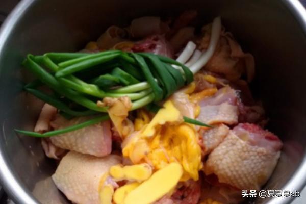 1、母鸡手工杀好,清洗干净,大油一定不能丢,加在一起炖汤才会更加鲜美。