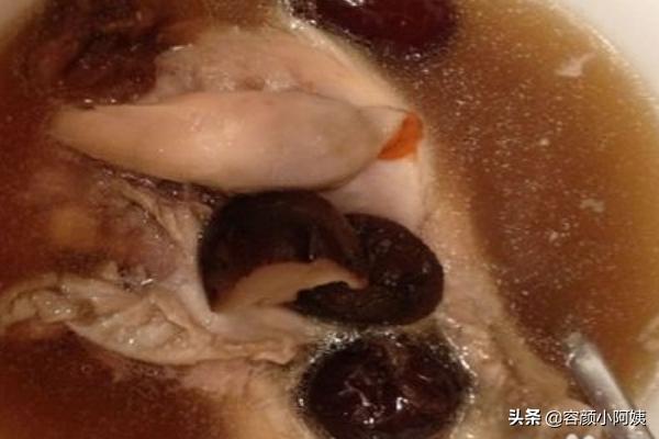2、香菇鸡汤:土鸡洗净剁小块,汆烫后捞出;香菇去蒂泡软,红枣洗净,生姜洗净切片;把所有材料放入砂锅,倒入料酒,再加适量清水,烧开后用小火炖1 个小时;最后放精盐、味精调味即可。